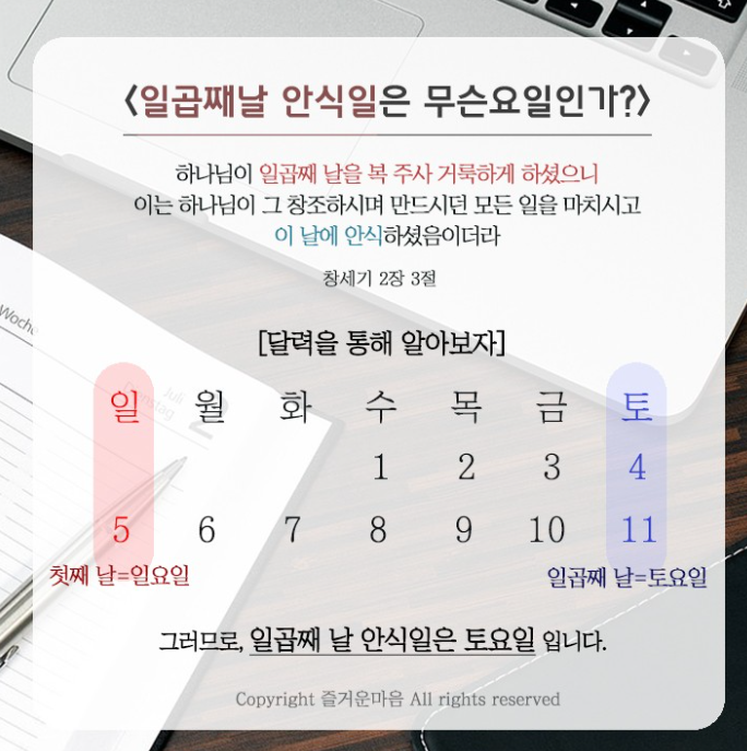 일곱째 날이 일요일로 알고 있는 분들이 의외로 많더군요.