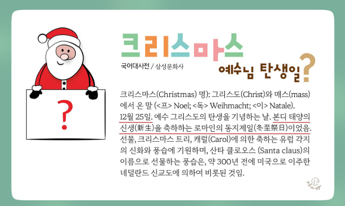 12월 25일을 태양신의 탄생일로 정하고 축하하였던 하나님을 믿지 않는 사람들이 행하였던 풍습을 교회 안에 들어오게 된 것으로 이교화 된 것입니다.