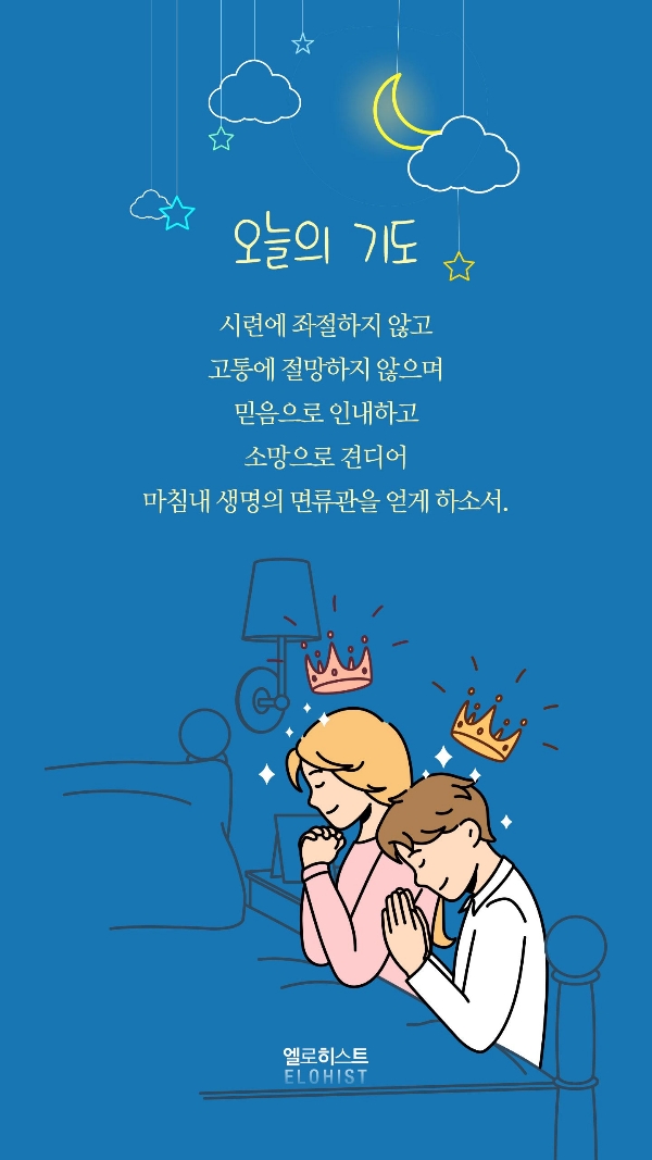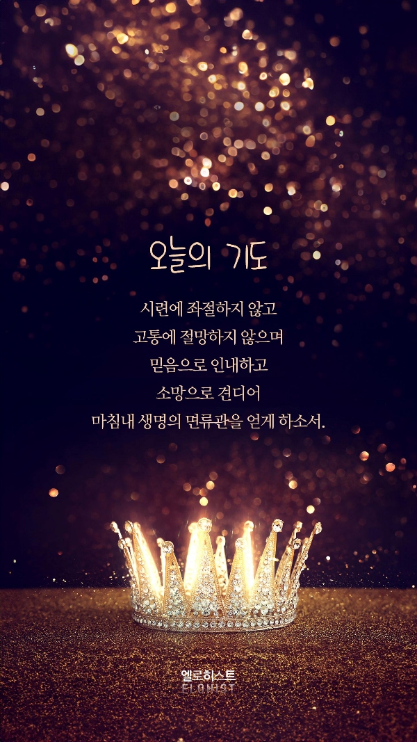 시련에 좌절하지 않고, 고통에 절망하지 않으며, 믿음으로 인내하고 소망으로 견디어 마침내 생명의 면류관을 얻게 하소서!