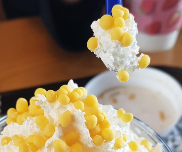 노란 초코를 담은 생크림을