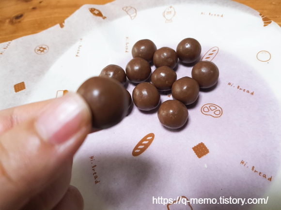 초코볼을 베어무는 순간 바사삭~ 소리가 나며 경괘함을 주네요